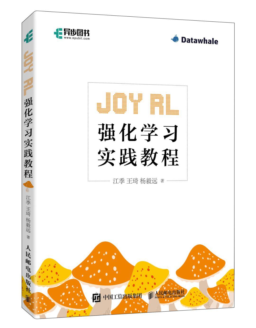项目地址:https://github.com/datawhalechina/joyrl-book同时,这也是在人民邮电出版社的支持下,继“南瓜书”“蘑菇书”“熊猫书”“蝴蝶书”“苹果书”之后,推出的第6本系列纸质书。