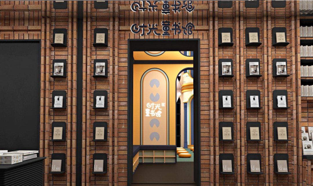 时光童书馆区域则是将天津当地丰富多彩的曲艺文化融合其中,窗帘形的书架搭配粗线条漫画风格,打造出舞台的造型,在“出将入相”之间,让孩子们在现代气息中体验浓郁的传统文化。
