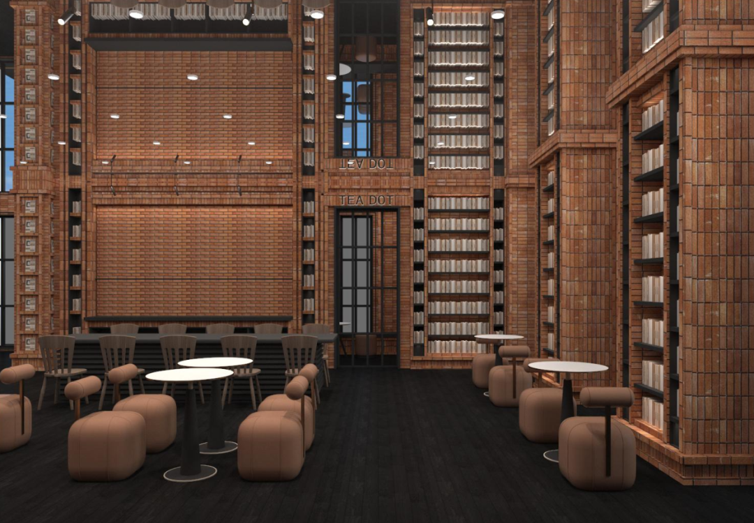两侧的咖啡区至多可同时入座70位读者,设计上将室外的红砖延伸入室内,座椅与温暖红砖色调搭配成古典又休闲的氛围,让人在都市的紧张和快节奏中得以休憩片刻圆拱门内,红砖搭建而成的螺旋形扶梯盘旋而上,犹如魔法神奇机关,吸引读者重新回到书店,感受城市的文化氛围。