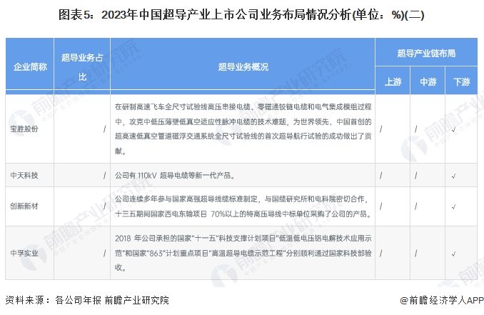 宝胜股份、中天科技、创新新材、中孚实业等主要布局产业链下游环节,超导产品多为超导电缆等,具体布局如下: