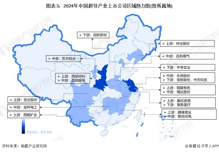 产业链区域热力地图:江苏和陕西地区产业链企业分布较密集从产业链代表性上市企业分布情况来看,陕西和江苏地区企业分布较密集山西地区有行业龙头企业西部超导,江苏地区代表有永鼎股份等,产业链上市企业区域分布如下:。