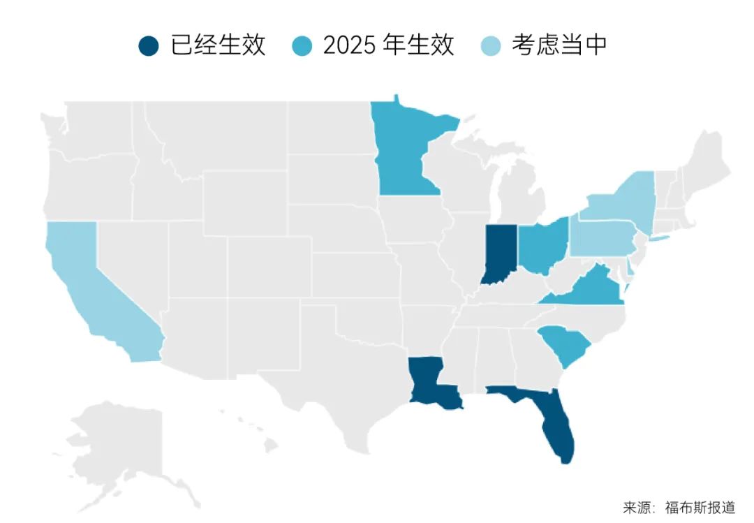 Yondr表示,预计到今年年底将有200万名学生使用它的手机袋图片来源:Yondr越来越多的地区性规则或州法律正在出台,要求严格限制在学校内使用智能手机(有时也包括笔记本电脑和耳机之类的个人设备)佛罗里达州、路易斯安那州和印第安纳州的州级法规已经生效,南卡罗来纳州、明尼苏达州、俄亥俄州和弗吉尼亚州也通过了相关的全州性措施,预计将在明年生效。